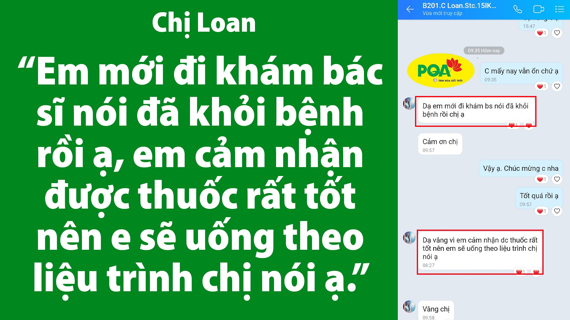 IV. CHIA SẺ CỦA BỆNH NHÂN ĐÃ DÙNG THĂNG DƯƠNG KHÍ PQA